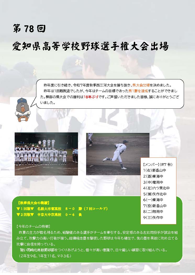 野球部 2025年9月26日 https://www.asahi.com/articles/ASQ7D7FYGQ7DOBJB00H.html 一般財団法人愛知県高等学校野球連盟 (aichi-kouyaren.com)